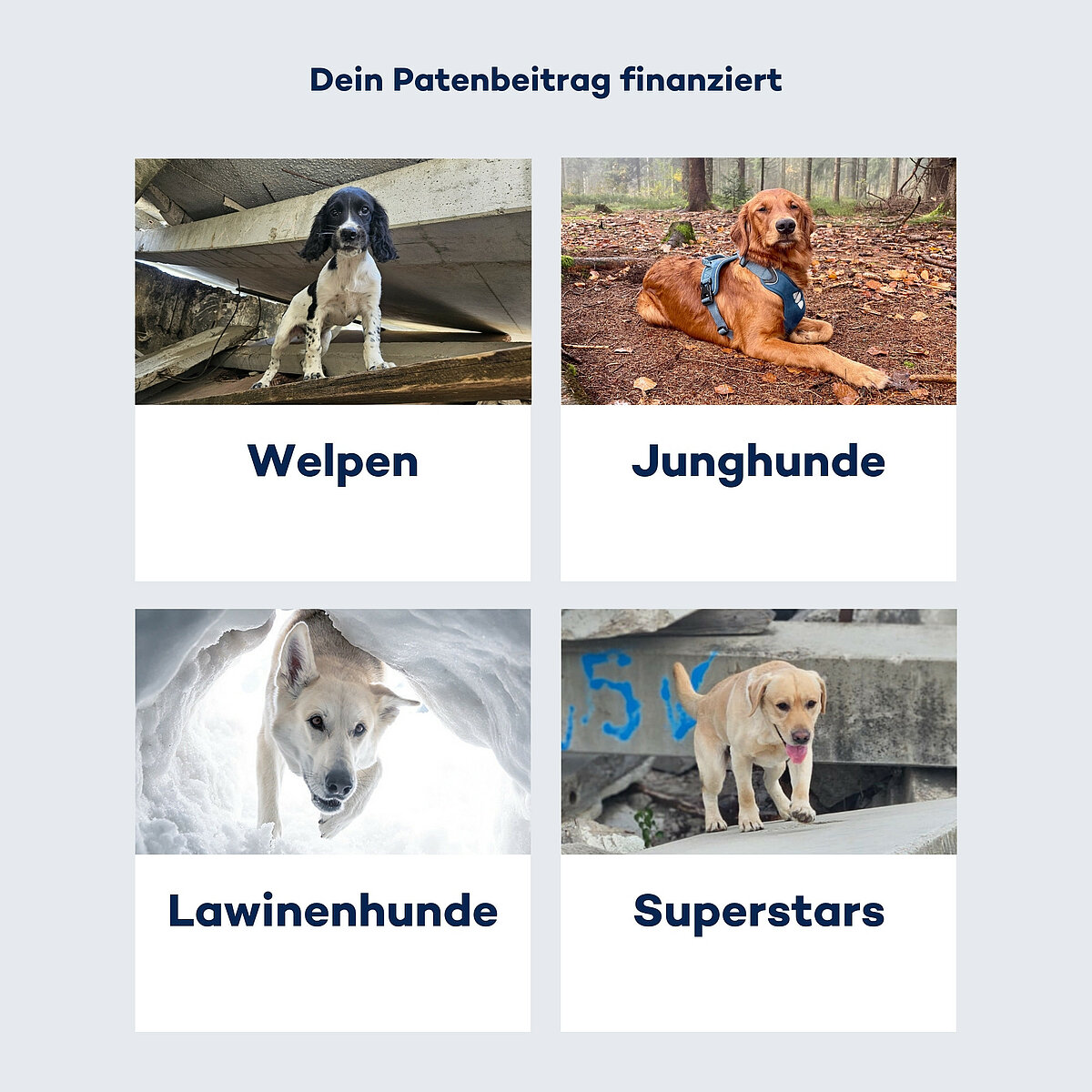 Wähle deinen Beitrag und begleite unsere Rettungshunde auf ihrem Weg.